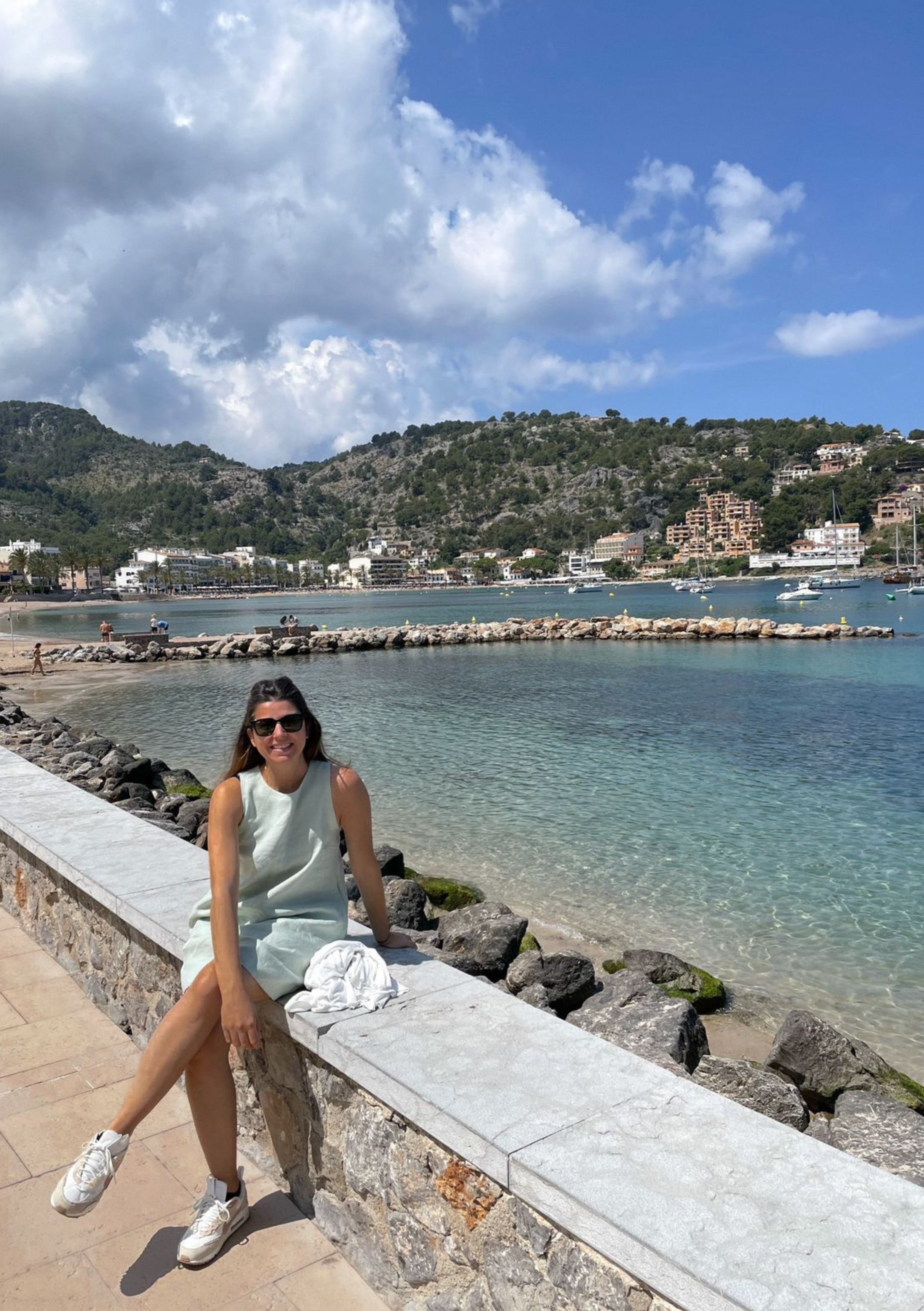 Me lembro da brisa dessa momento dessa foto. Nesta manhã, passeamos pela ilha da Espanha. Para isso, escolhi meu Vestido Alice Verde Menta e um tênis confortável.